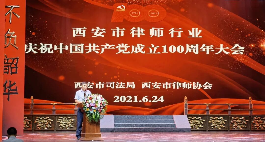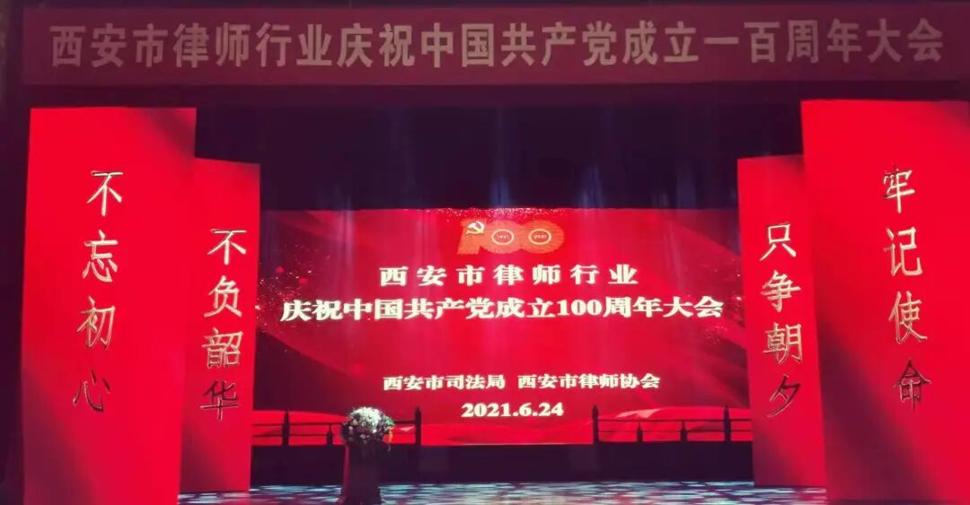 为庆祝中国共产党成立一百周年,贯彻落实习近平法治思想,为建设一支忠于党、忠于祖国、忠于人民、忠于宪法的律师队伍而奋斗,2021年6月24日下午,西安市司法局主办,西安市律师协会承办的西安市律师行业庆祝中国共产党成立一百周年大会,我所积极组织律师参加了此次庆祝大会。本次庆祝大会参会人员有省司法厅副厅长、省律师行业党委书记李艾平,省律协会长韩永安,市司法局党组书记赵夏,市民政局副局长朱友明,市中级人民法院副局级审判员乔永立,市司法局副局长王安军,市司法局政治(警务)部主任孙雅玮,省律协秘书长张新春,市委统战部新的社会阶层人士工作处处长郭英文,市检察院案管办主任王庆红,市公安局法制支队支队长刘兵,市民政局社会组织管理局局长曹立宏,市律协会长姚子奇、监事长刘云江,市律协副会长、副监事长、理事、监事,及全市广大律师共计500余人。