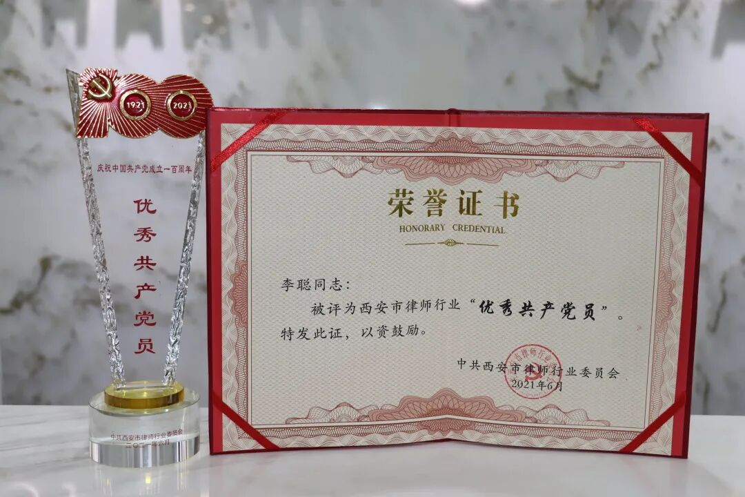 铭记党的光辉历史,传承党的光荣传统。不断推进党的宏伟事业,让每一名党员律师,在缅怀历史中不忘初心,牢记使命;在展望未来中激发动力,激励全市广大党员、律师进一步振奋精神、砥砺前行。我所主任、党支部书记李聪律师荣获西安市律师行业“优秀共产党员”荣誉称号,既是上级党组织对其工作的充分肯定,也是对我所的极大鼓舞,她表示未来将牢记党员律师肩负的职责和使命,时刻以党员的标准严格要求自己,坚守公平正义之心、常怀为民服务之情,矢志不渝做新时代党员律师的示范带动者。同时带领我所积极承担社会责任,为法治西安建设贡献自己的力量,以坚定、务实的行动向建党百年献礼。