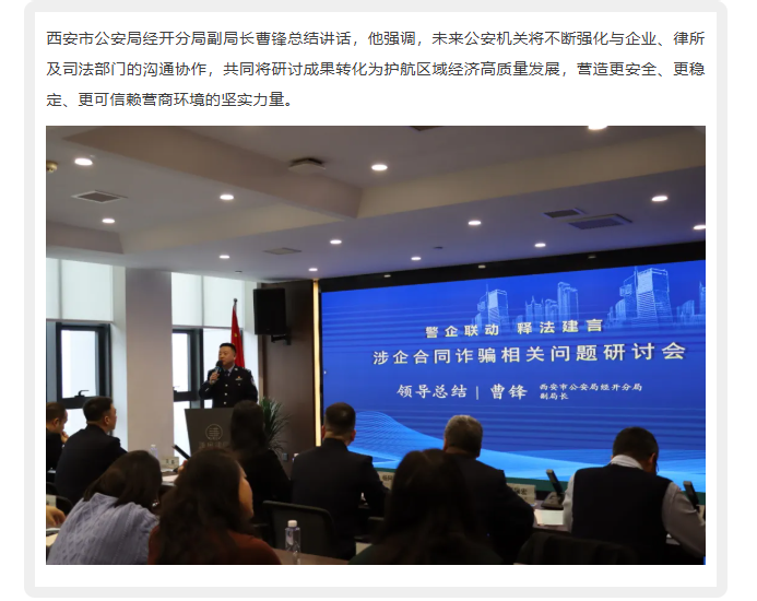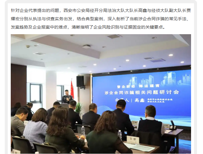“警企联动 释法建言”涉企合同诈骗相关问题研讨会成功举