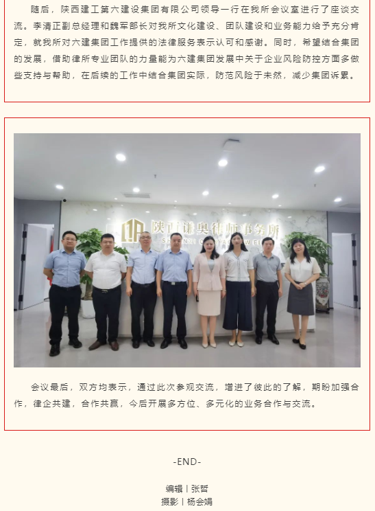 陕西建工第六建设集团有限公司一行莅临我所参观指导