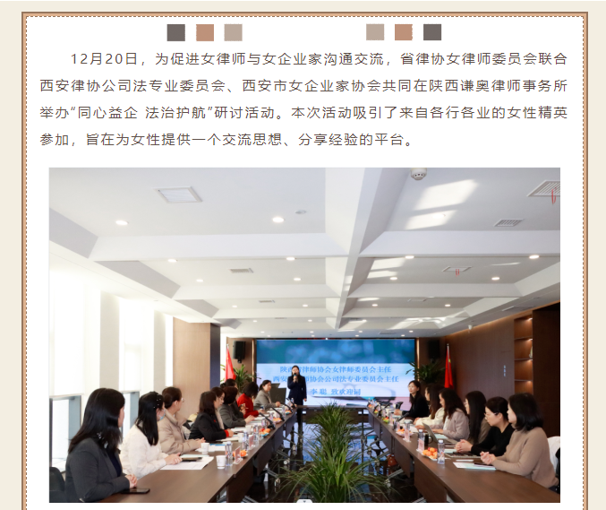 陕西律协女律师委员会“同心益企 法治护航”研讨活动在谦奥律所成功举办