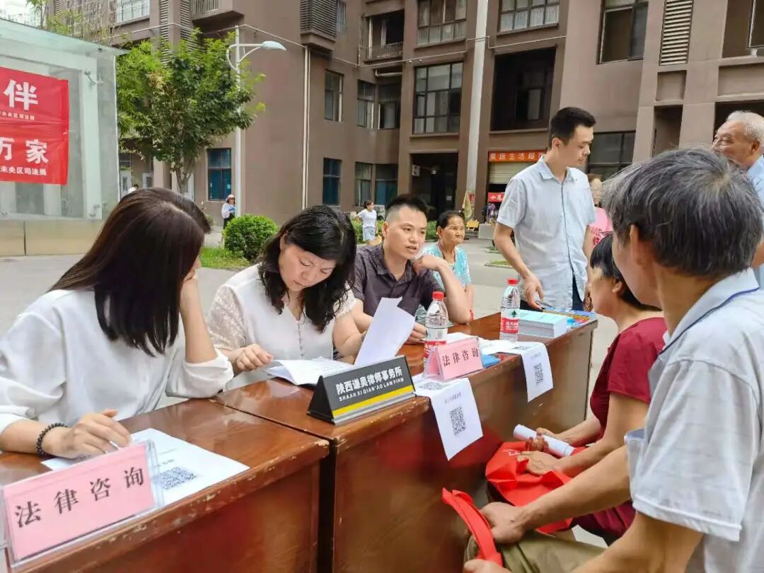 为进一步推动《民法典》宣传深入群众,弘扬法律精神,增强群众的法治意识,推进西安市未央区司法局“百年华诞办实事,普法百场利万家”活动深入开展,2021年6月24日上午,陕西谦奥律师事务所协同西安市未央区司法局张家堡司法所开展了法律咨询及法律宣传进社区活动。陕西谦奥律师事务所刘蓁娟等律师为贞观首府社区居民提供政策、法律咨询服务和法律宣传。