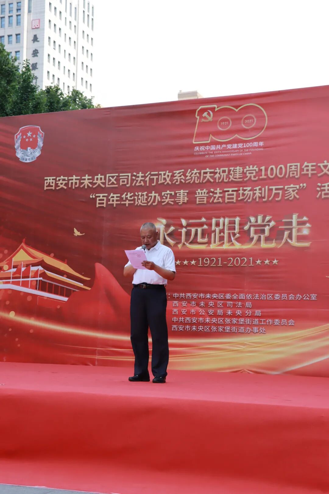 为表彰先进,树立典型,未央区司法局副局长刘程州宣读《关于表彰法律援助和人民调解优秀案例的通知》。未央区司法局副局长杨婷宣读《关于表彰“百年华诞办实事 普法百场利万家”主题活动十佳律所的决定》。根据参与深度和普法场次,区委依法治区办、区司法局决定,对在此次活动中表现突出的陕西谦奥律师事务所等10家律所予以表彰。