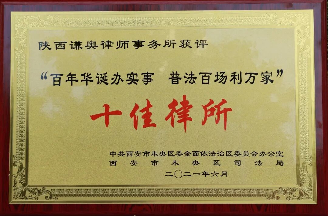 路漫漫其修远兮,吾将上下而求索。谦奥律所成立以来重视并热心参与公益法律服务,踏实践行“我为群众办实事”的行动理念,积极参与未央区举办的“百年华诞办实事 普法百场利万家”主题活动。本次获得“十佳律所”荣誉称号,是对谦奥律所普法宣传工作的充分肯定。这份荣誉将进一步激励我所一如既往践行公益服务理念,撒播法治文明阳光,为法治西安建设贡献力量。